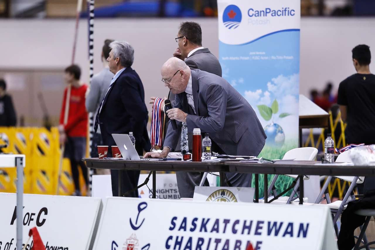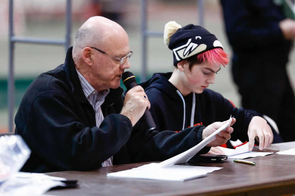 At the beginning of Day 2, we agreed that we should push it a little to see if we could make things more lively. We didn’t have to worry because a technological disaster turned us into heroes. The scoreboard crashed and couldn’t be coaxed back into life! We didn’t miss a step since we had the paper start lists and had prepared full color bios on all the athletes. We roared along through that day just like the good old K of C Games!!!